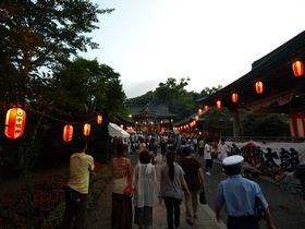 富士山麓にある、山中湖の大自然に抱かれた、由緒正しい山中諏訪神社。豊玉姫命を祭神とする安産・子授・子宝・子育て、縁結の神社として有名です。9月4日、5日、6日には例大祭「安産祭り」が行われ、夜祭のみこしをかついだ氏子の女性には、安産が約束されると言われており、、古くから妊産婦や新婚女性が集まるお祭りとして全国的に知られています。