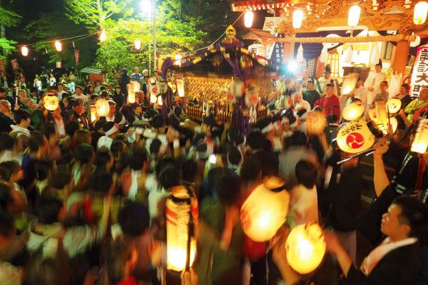 富士山麓にある、山中湖の大自然に抱かれた、由緒正しい山中諏訪神社。豊玉姫命を祭神とする安産・子授・子宝・子育て、縁結の神社として有名です。9月4日、5日、6日には例大祭「安産祭り」が行われ、夜祭のみこしをかついだ氏子の女性には、安産が約束されると言われており、、古くから妊産婦や新婚女性が集まるお祭りとして全国的に知られています。